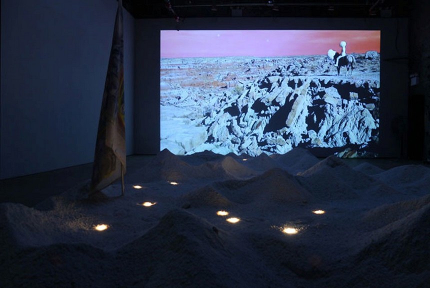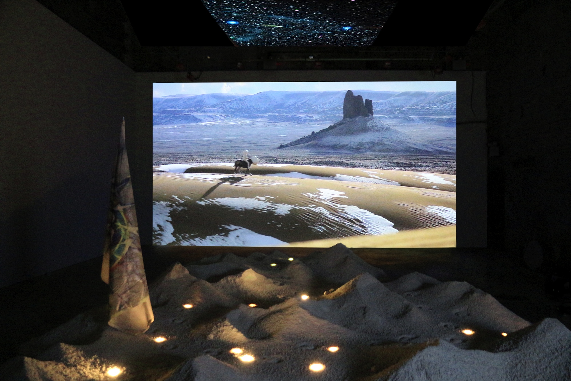PERFORMANCE FOLLOWING THE LINE OF THE FIRST MOONWALK 2013 @ ATI MAIER video in 1920x1080 25p (Full HD) edited in Adobe Premiere, A. After Effects aspect ratio 16:9 length 03 min 12 sec Production Klaus Knoesel, FKK-Film Camera Timo Seidel Post Production Patrick-Zaki Location Rodeo Grounds, Thermopolis, WYO Edition of 3 plus 1 Directed and performed by Ati Maier |